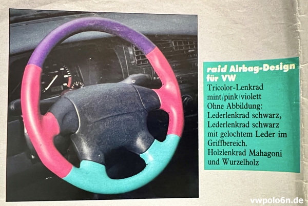 In der zweiten Hälfte der 1990er Jahre gab es in diversen VW Polo- und allgemeinen VW-Zubehörkatalogen Sonderlenkräder zum Kauf direkt beim VAG Händler zum einfachen Nachrüsten am VW Polo 6N1, Golf 3/Vento, Passat 35i etc. .